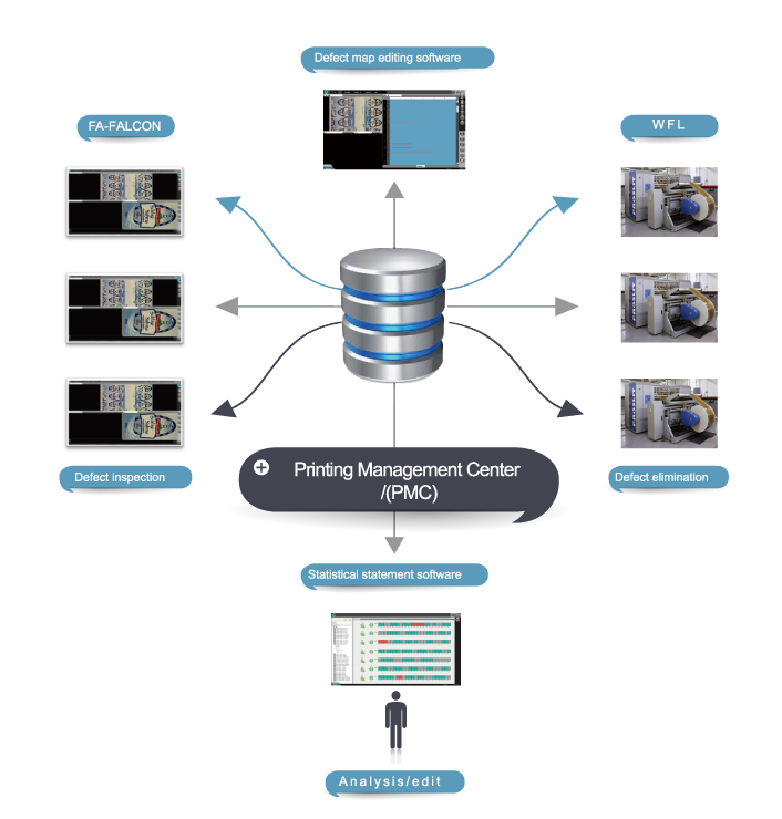 It is suitable for surface quality inspection of web packaging and printing products, realizing high-precision, automated real-time inspection of different web widths, timely detection of ink spots, dirty plates, knife lines, color difference, foreign matter and other defects, ensuring product quality consistency, eliminating material waste and reducing production costs. It is suitable for on-line printing, laminating, coating, laminating, slitting, off-line large rewinding, small rewinding detection/rejection and other scenes.